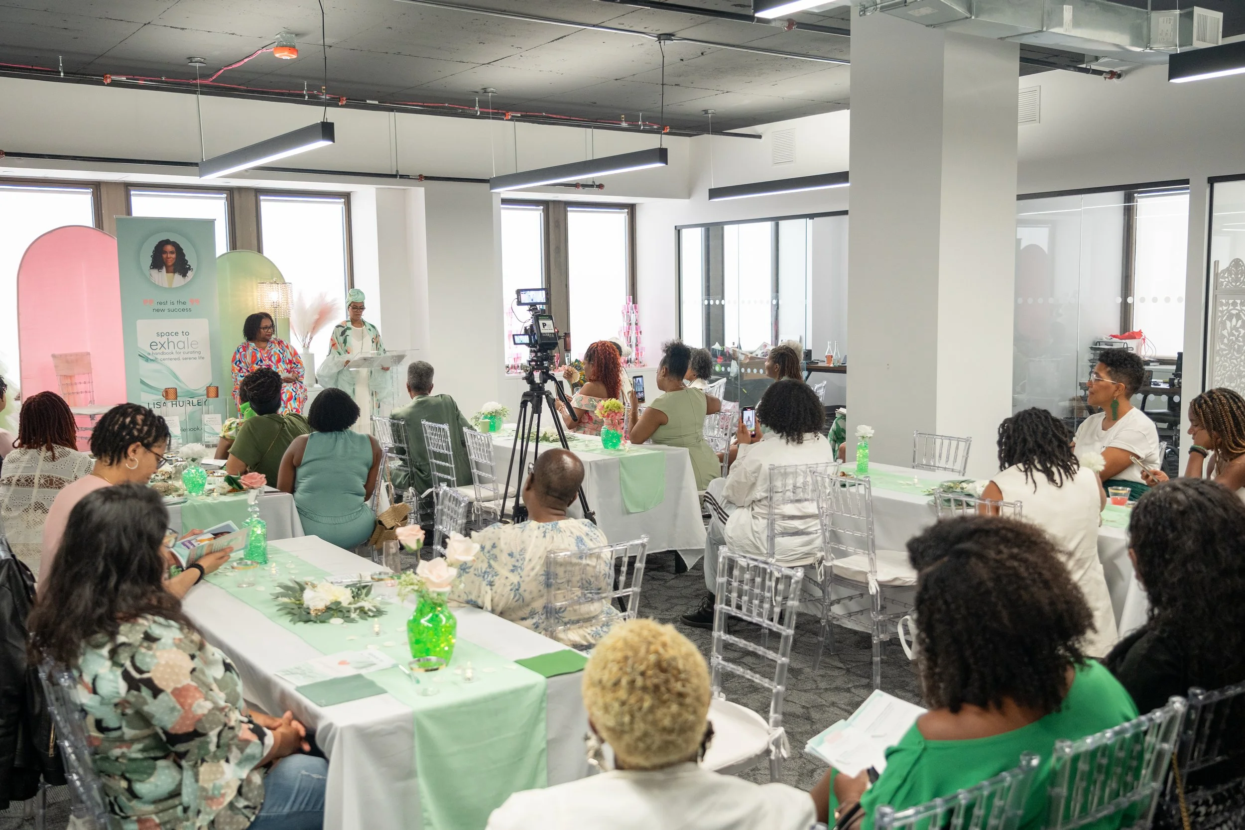 This is a classy-casual event! Don't know what that is? Refer to the Space To Exhale vibes of rest, relaxation, and community. Our ask is to try to dress in the brand colors for pictures, that includes mint greens, soft pinks, and white. Whatever your style is, we love it!